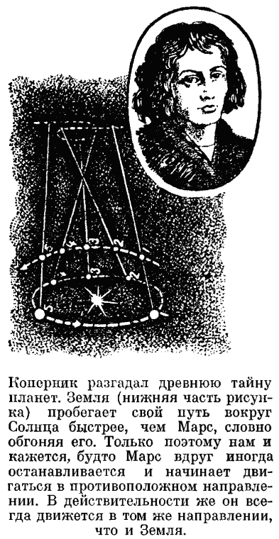 Коперник, можно сказать, открыл новую планету: к пяти, уже известным в то время, он добавил шестую, на которой живем мы, люди. Великий ученый разгадал наконец древнюю тайну планет и странных завитушек на их пути: ведь люди наблюдают планеты из своего «жилища», с Земли, но сама она не стоит на месте, а непрерывно движется вокруг Солнца.