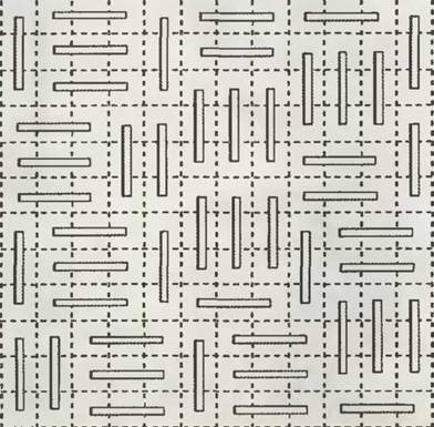 Недорисованные спички: В квадрате 12*12 художник начал рисовать спички по одной на каждые три квадратика (см. рисунок). Найдите один из возможных вариантов дорисовать спичкам головки, чтобы в каждом вертикальном и горизонтальном ряду, а также и по диагоналям было бы ровно по четыре головки.