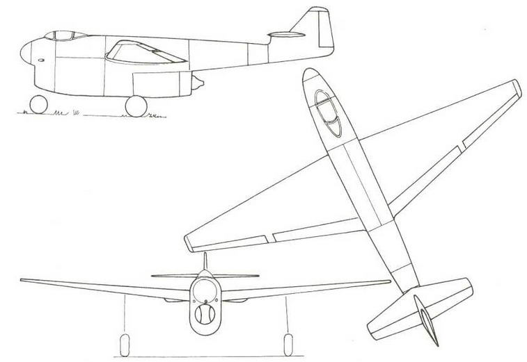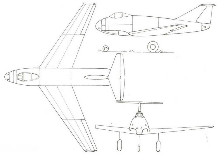 Не ясно было, при затруднительной в некоторой степени ситуации с воздухозаборниками, как хотели конструкторы улучшить несущие качества стреловидного крыла в полете на малых скоростях, так как на сохранившемся оригинале чертежа не обозначено никаких вспомогательных устройств, подобных щиткам и закрылкам. Самолет отчетливо напоминает по своей схеме многие удачные машины послевоенного времени.