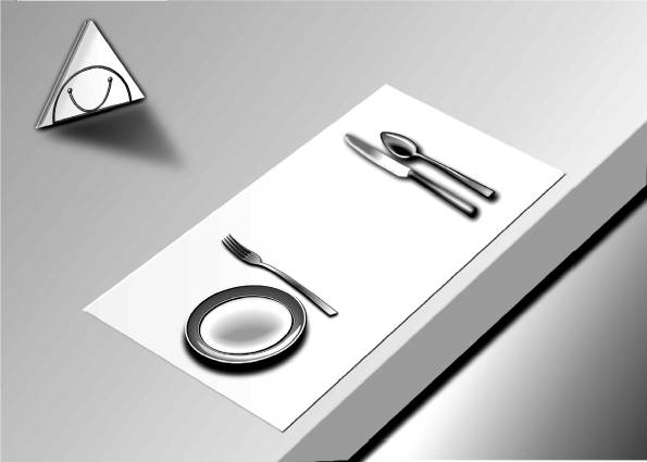 В случае, если при сервировке на стол не ставят закусочную тарелку, то на ее место кладут полотняную подкрахмаленную (не бумажную!) салфетку, сложенную вчетверо (из прачечной салфетки поступают сложенными вдвое). Для обеда, а также для праздничного ужина, банкета салфетки часто складывают в форме конусных колпачков: вначале складывают салфетку вдвое, а затем подвертывают ее нижний конец, придавая форму колпачка.