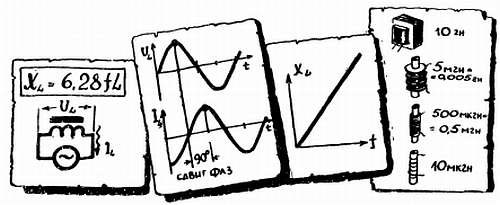 Когда изменяется ток в катушке, то изменяется созданное этим током магнитное поле, и в результате электромагнитной индукции (наведения) катушка сама в себе наводит электродвижущую силу. Величина этой э. д. с. самоиндукции зависит от скорости изменения тока (а значит, от его частоты), а также от некоторых свойств самой катушки, которые отображены в ее коэффициенте самоиндукции, или, иначе, индуктивности L. Индуктивность L, в частности, тем больше, чем больше витков. Резко увеличивает L сердечник из стали или другого ферромагнитного материала.