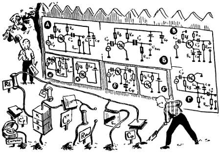 Вам, по-видимому, хочется узнать, для чего понадобилось такое отвлечение от «конкретных сторон, свойств или связей» нашего «предмета» — транзисторного усилителя? И почему нельзя знакомиться с транзисторными усилителями не по абстрактным, а по конкретным схемам, которые в заключение знакомства можно было бы «спаять» и «пустить в дело»? Пусть таких практических схем очень много, пусть знакомство с ними дело долгое и утомительное, но ведь лучше сразу затрачивать силы и время на нужное, практически важное дело, чем заниматься какими-то абстракциями!