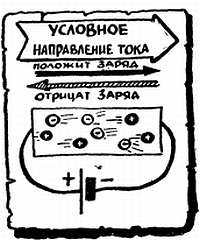 Разбирая сложные схемы, нужно следить, где возникает «плюс», где «минус», куда идет ток и т. д. Ток могут создавать и положительные, и отрицательные заряды, которые, естественно, под действием одного и того же напряжения движутся в разные стороны. Положительные заряды всегда тянутся к «минусу», а отрицательные бегут от него. Чтобы не заводить лишней путаницы, договорились следить только за движением положительных зарядов, а на отрицательные (электроны), по возможности, вообще не обращать внимания. Поэтому официальное направление тока — от «плюса» к «минусу».