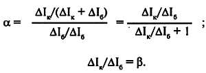 α = ΔIк/ΔIэ = ΔIк/(ΔIк + ΔIб) поскольку ΔIэ = ΔIк + ΔIб