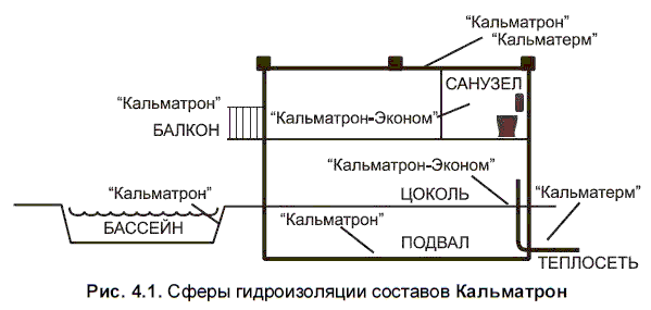 Состав штукатурный гидроизолирующий используется в строительстве и ремонте насосных станций и шахт, хранилищ воды, плавательных бассейнов, подвалов, перекрытий, канализационных коллекторов, каналов, емкостей очистных сооружений, плотин и многих других сооружений. Применяется и для зачеканивания активных протечек швов стеновых панелей, блоков, раструбных труб и проч. (рис. 4.1).