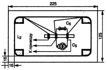 Катушка L1 намотана на каркасе диаметром 6 мм и содержит 115 витков провода ПЭЛ 0,3 мм с отводом от 15-го витка, считая от коллектора. Катушка L2 выполнена в виде рамки из 50 витков провода ПЭЛ 0,5 мм с отводом от 10-го витка, считая от конденсатора С7.