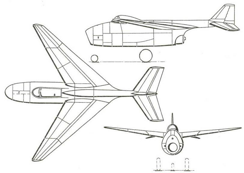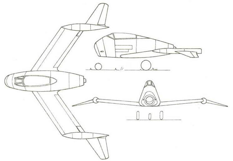 Вызывает интерес маленькое переднее крыло в носовой части фюзеляжа, которое сегодня вновь можно увидеть у некоторых скоростных самолетов бесхвостой схемы. Оно должно было повысить, в первую очередь, угол атаки и устойчивость самолета в полете с малой скоростью.