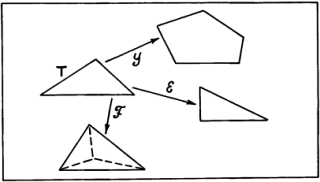 можно назвать преобразованием по аналогии. Треугольная пирамида сохраняет многие свойства треугольника, но является не плоской, а объемной фигурой.