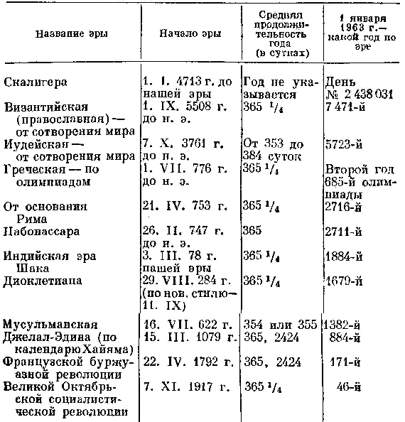 Следующая таблица поможет читателю ориентироваться в летосчислении по некоторым эрам.