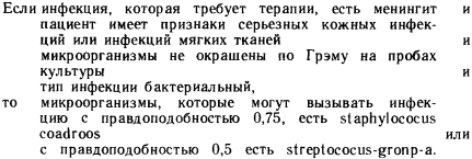 Мы рассматривали до сих пор лишь такие продукции, в которых В обязательно следовало при активизации продукции. Однако весьма часто продукции приходится использовать в условиях правдоподобного вывода. Собственно говоря, правдоподобные схемы рассуждений из четвертой главы уже демонстрируют продукции такого сорта. Тем не менее, приведем еще один пример, взяв его из уже упоминавшейся экспертной системы MYCIN. Поскольку в ряде случаев система не может выдать рекомендацию со стопроцентной уверенностью, то она выдает ее с оценкой правдоподобности, о которой мы говорили в предшествующей главе.