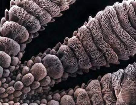 Но мух и квакш превосходит в умении бегать по потолкам стенной геккон. Взгляните на сильно увеличенное изображение лапок этой ящерицы. Они снабжены мускулистыми подушечками со складками, которые способны охватывать малейший выступ поверхности.