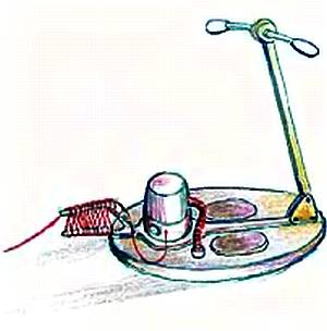 На этом принципе несложно сделать забавный спортивный снаряд, изображенный на рисунке. Стоит на него встать, и, оттолкнувшись, легко проскользишь из угла в угол спортивного зала. Основная проблема — так подвести к пылесосу ток, чтобы не путаться в шнуре.