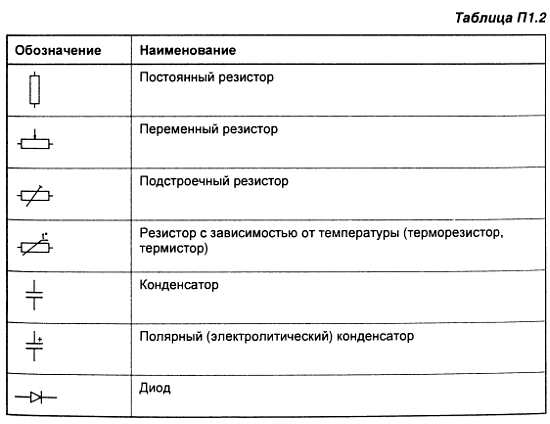 В табл. П1.2 приведены символические обозначения в электрических схемах.