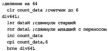 Для примера предположим, что мы некую величину измерили 64 раза и хотим узнать среднее. Пусть сумма укладывается в 2 байта, тогда вся процедура деления будет такой: