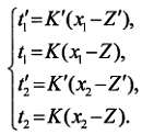 Для расчета новых (правильных) значений коэффициентов K' и Z' достаточно решить относительно них систему уравнений: