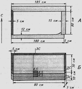 Так описана могила № 16 в монографии "Син-ташта". Мы располагаем подлинным полевым документом с чертежом западной стенки погребальной камеры и можем привести точные значения замеров деталей конструкции досок. Они несколько отличаются от тех, что приведены в книге (рис. 58). На рисунке видно, что внутренний размер камеры 80 см х 160 см, или 1 ар° х 2 ар°. Более точно длина камеры составит 165 см.