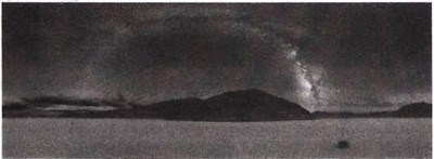 Рис. 20.11. Направление на центр Галактики лежит между созвездиями Стрелец и Скорпион, невысоко над горизонтом в правой части этой прекрасной фотопанорамы Долины Смерти. Заметьте, что пылевые облака растянулись вдоль полосы Млечного Пути. Фото получено Дэном Дуриско (Dan Duriscoe, U. S. National Park Service) no программе исследования светового загрязнения среды и разработки методов защиты оставшихся на Земле мест с темным небом.