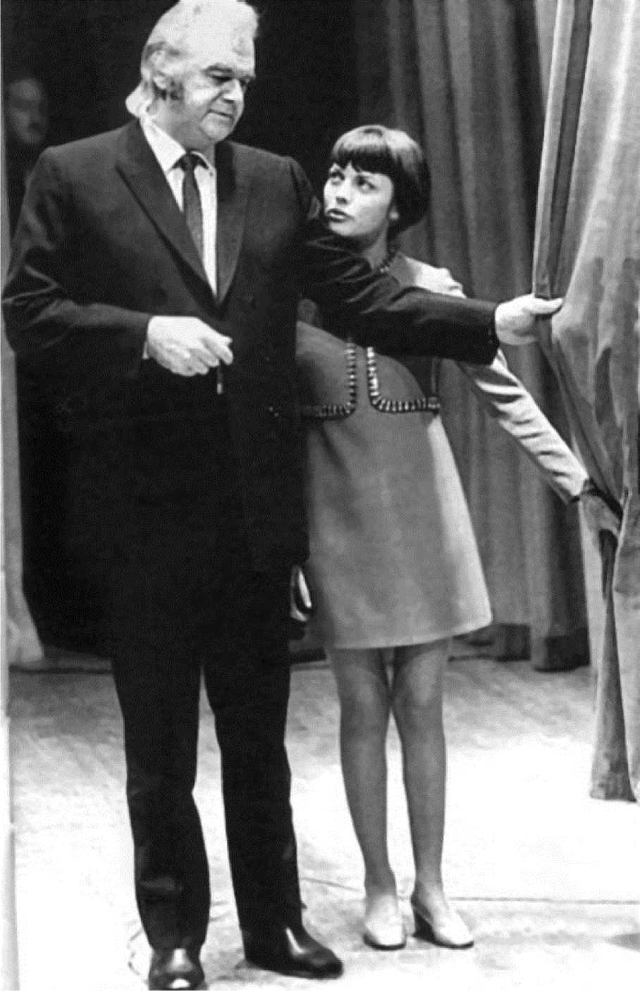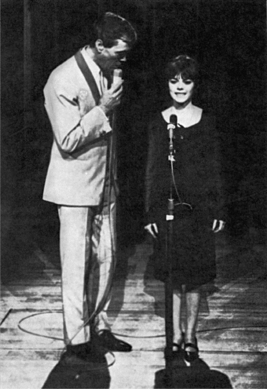 Ведущий популярной телепередачи «Теле-Диманш» Роже Ланзак представляет Мирей Матье 21 ноября 1965 г.