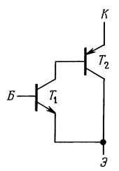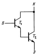 Если соединить транзисторы, как показано на рис. 2.60, то полученная схема будет работать как один транзистор, причем его коэффициент β будет равен произведению коэффициентов β составляющих транзисторов.