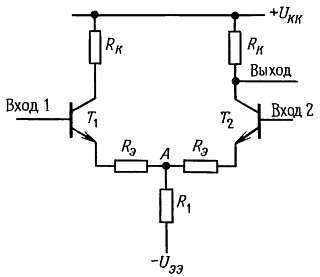 Рис. 2.67. Классический транзисторный дифференциальный усилитель.