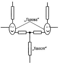 Дифференциальный усилитель можно образно назвать «длиннохвостой парой», так как, если длина резистора на условном обозначении пропорциональна величине его сопротивления, схему можно изобразить в таком виде, как показано на рис. 2.69. «Длинный хвост» определяет подавление синфазного сигнала, а небольшие сопротивления межэмиттерной связи (включающие собственные сопротивления эмиттеров) — усиление дифференциального сигнала.