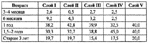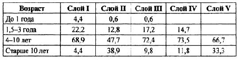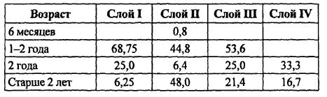 Возраст животных, от скелетов которых сохранились изучаемые кости, определялся по степени срастания эпифизов костей с диафизами, а также — по состоянию зубной системы черепов и нижних челюстей. У различных видов животных состояние синостоза костей (время полного срастания эпифизов с диафизами) наступает в различные возрастные периоды. Нами использованы эти данные по конкретным видам, суммированные в работе О. Цичмана и О. Кроллинга [Zietshmann, Krolling 1955]. Определение возраста по срокам прорезывания зубов для различных видов животных проводилось по таблицам В. Элленбергера, Х. Баума [Ellenberger, Baum 1943]. Для определения возраста лошадей старше пяти лет по степени стирания резцов нами взята информация из работы Корне-вена и Лесбра [1929]. При плохой сохранности резцов возраст лошадей вычислялся по коренным зубам по методике А. Г. Петренко [1965].