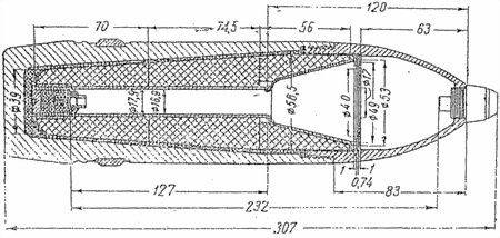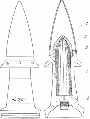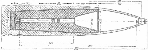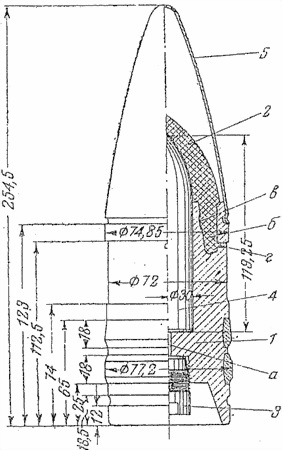 Фиг. 78. 75-мм снаряд кумулятивного действия к легкому пехотному орудию обр. 18