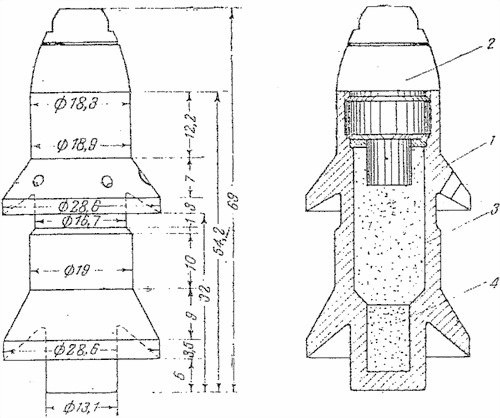 Фиг. 82. Надкалиберная мина кумулятивного действия к 37-мм противотанковой пушке.