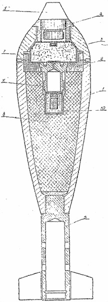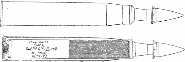 3) выемке в передней части разрывного заряда 75-мм снарядов придана коническая форма (75-мм снаряды кумулятивного действия старого образца имеют цилиндрическую выемку, заканчивающуюся в нижней части полусферой),