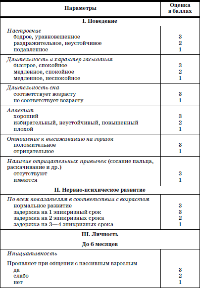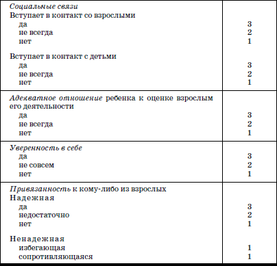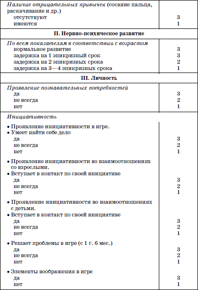Доцентом кафедры поликлинической педиатрии РМАПО К.Л. Печорой разработаны психолого-педагогические параметры, которые могут служить прогнозом адаптации и выявить проблемы, возникающие у ребенка при переходе в новые условия жизни. Они состоят из трех блоков: