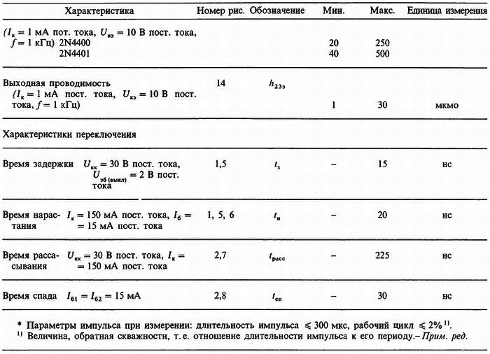 • Полный перечень переключательных и усилительных характеристик.