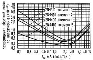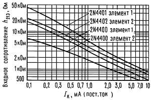 Эта группа графиков иллюстрирует взаимосвязь между h21э и другими h-параметрами для транзисторов этой серии. Для получения этих кривых были отобраны элементы с высоким и низким коэффициентом усиления среди транзисторов типа 2N4400 и 2N4401, соответствующие номера элементов проставлены на каждом из графиков.