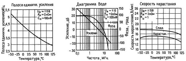 Эти усилители можно рекомендовать к использованию в качестве быстродействующих интеграторов, быстродействующих цифро-аналоговых преобразователей, схем выборки и запоминания и прочих схем, требующих небольшого напряжения сдвига и небольшого дрейфа этого напряжения, малого входного тока смещения, большого входного импеданса, высокой скорости нарастания и широкой полосы пропускания.