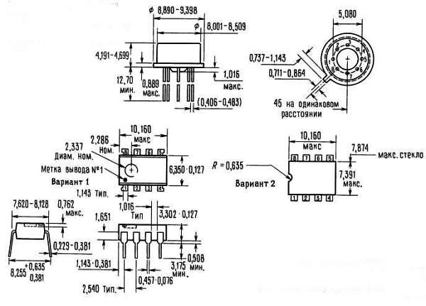 Примечание 3. Эти элементы предназначаются как для коммерческого диапазона температур, 0 °C <= Токр <= 70 °C, так и для военного диапазона, — 55 °C <= Токр <= 125 °C Диапазон температур обозначается символом, который стоит в серийном номере перед обозначением типа корпуса. Символ «С» указывает на коммерческий диапазон температур, символ «М» — на военный. Для военного диапазона температур предназначен только корпус типа «Н».