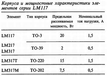 Для LM117K, LM217K и LM317K используют стандартные транзисторные корпуса ТО-3, для LM117H, LM217H и LM317H-транзисторные корпуса ТО-5 с коваровым основанием. LM117 работает в диапазоне от —55 до +150 °C, LM217-OT -25 до 150 °C и LM317-OT 0 до 125 °C.