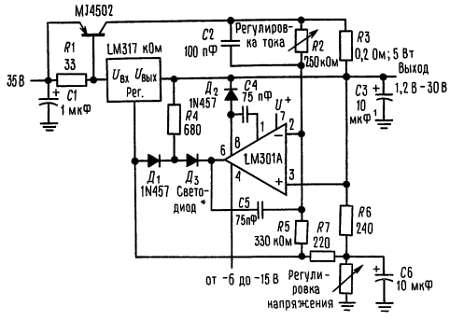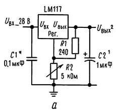 а — регулируемый стабилизатор напряжения 1,2-25 В.
