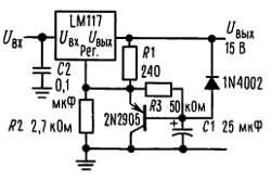Стабилизатор напряжения 15 В с замедленным включением.
