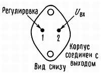 При использовании корпуса ТО-3 нетрудно уменьшить сопротивление между корпусом и задающим резистором, для этого нужно использовать два отдельных провода. Однако при использовании корпуса ТО-5 нужно принять меры для того, чтобы уменьшить длину провода, присоединяемого к выходу. Один конец резистора R2 можно подключить к земле вблизи земли нагрузки, это обеспечивает возможность дистанционного управления землей и улучшает стабилизацию по нагрузке.