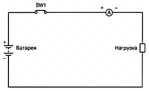 Измерение тока в схеме обычно осуществляется с помощью амперметра или токоизмерительных клещей. Амперметр указывает и локализует обычные дефекты схем, например короткие замыкания, обрывы в цепях, замыкания на землю. Помните, что амперметр должен подключаться последовательно с цепью, в которой вы измеряете ток (рис. 1.2).