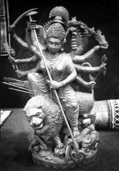 Статуи Дурги – это целые скульптурные комплексы, в которые входят фигуры, символизирующие доброе и злое начало. Центральное место занимает сама Дурга – многорукая, прекрасная, беспощадная ко злу.