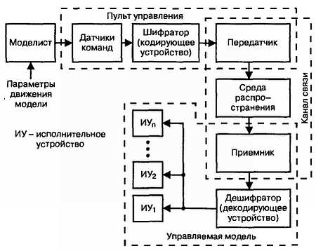 Различают автономные, неавтономные и комбинированные системы, особенности каждой из них подробно рассмотрены, например в [1]. Применяемая моделистами всего мира аппаратура относится к классу неавтономных систем командного управления. Рассмотрим общие принципы функционирования таких систем с помощью структурной схемы (рис. 1.1).