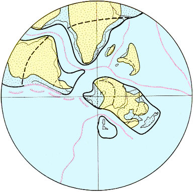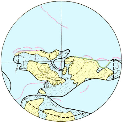 Положение литосферных плит и срединно-океанических хребтов в позднемеловой эпохе