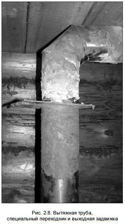 Трубы для вытяжки я также применяю промышленные, из магазина, диаметром 10 см. Соединение — одна в другую по принципу телескопа. Для поворота трубы (до 90 °) применяю специальный переходник (рис. 2.8).