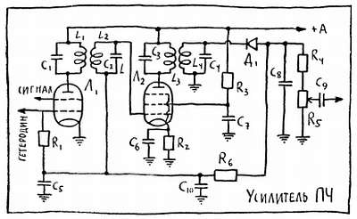 На пути от преобразователя к детектору можно усилить сигнал разностной (обычно ее называют промежуточной) частоты и с помощью колебательных контуров тщательно отделить его от других составляющих.