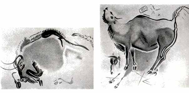 Грубое каменное оружие пещерные жители украсили рисунками мамонтов, бизонов, диких лошадей.
