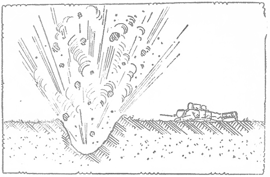 Взорвется под землей осколочная мина, прорвет в земле воронку, и летят из воронки осколки кверху, как из жерла широкогорлой мортиры.