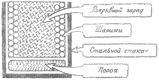 Прыгнет снаряд из стакана в высоту. Загорится на лету огнепроводный шнур. Взорвется в зажигательной трубке капсюль. Это третий взрыв.