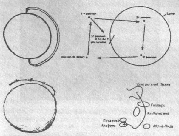 Рис. 17. Зарисовки криволинейных траекторий объектов, двигавшихся в окрестностях лунного диска.