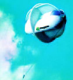 НОВЫЙ ТИП ВЕТРОДВИГАТЕЛЯ испытали недавно специалисты канадской фирмы Magenn Power. Как известно, одним из главных недостатков нынешних наземных установок, мешающих их стабильной работе, является непостоянство ветров. А вот на высоте в несколько километров над поверхностью земли ветры дуют постоянно; там и надо помещать лопасти ветродвигателя. Руководствуясь такими соображениями, инженеры сконструировали и изготовили аэростат специальной формы (см. фото), наполнили его гелием и подняли для начала на высоту 300 м. Гелиевая вертушка тут же закрутилась, вырабатывая электричество с помощью установленного внутри ее генератора.