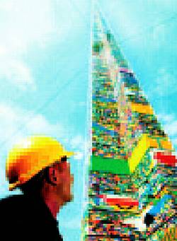 «ЛЕГ0»-НЕБ0СКРЕБ высотой в 30,5 м собрали за четыре дня юные посетители «Легоцентра» в Виндзоре (Англия). В честь 50-летия фирмы, выпускающей всем известные конструкторы, в центре было заготовлено 500 000 деталей, блоки из которых каждый желающий мог вмонтировать в остов башни с помощью специального крана. В итоге и был поставлен новый рекорд «башнестроения» из деталей конструктора. Прежний, установленный года два назад в Торонто (Канада), был равен 29,3 м.